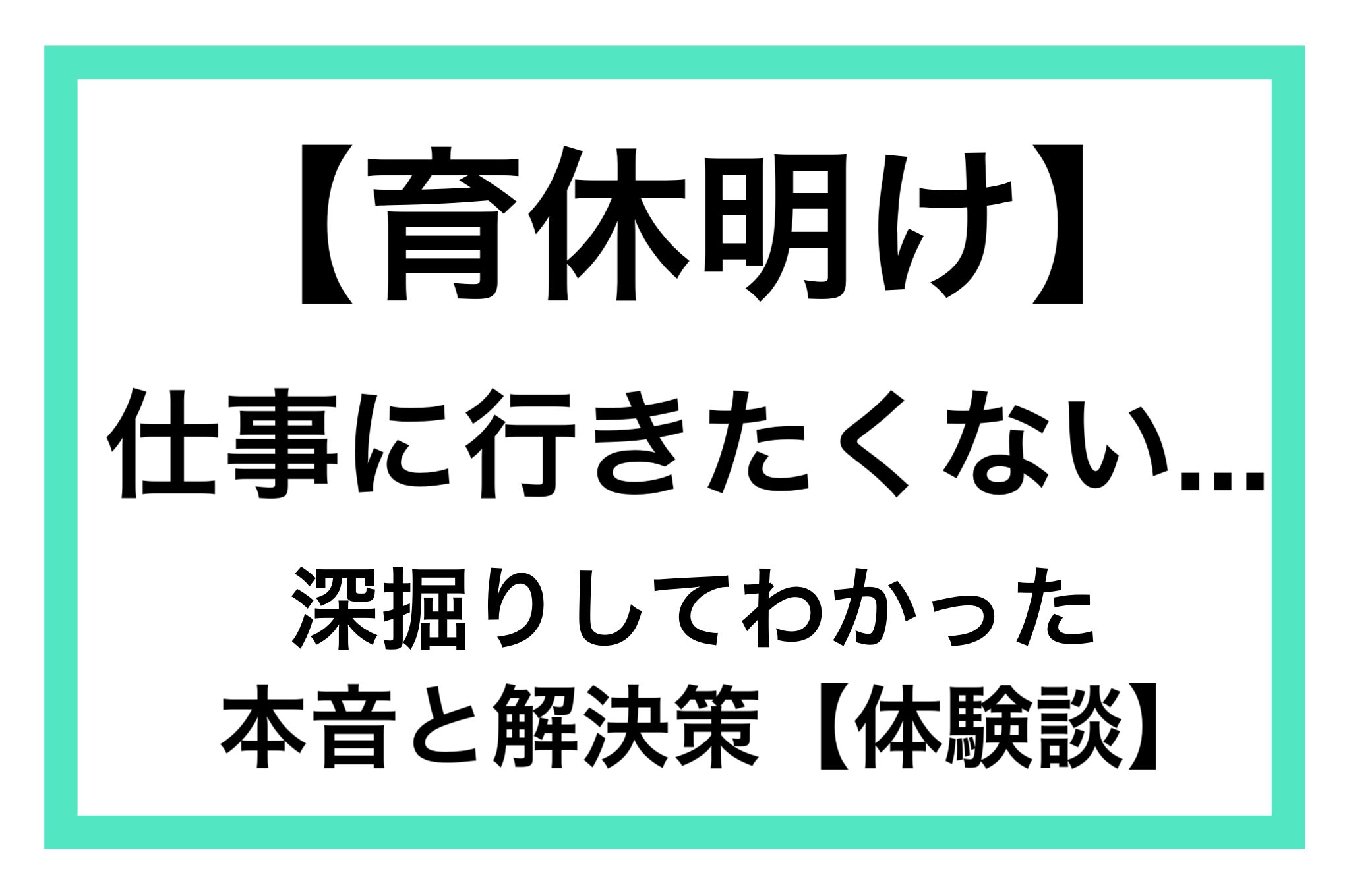 育休明け、仕事に行きたくない…深掘りしてわかった本音と解決策【体験談】