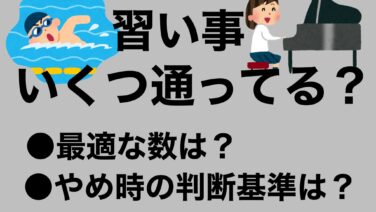 節約・お金の話 習い事はいくつ通ってる?4児ママが教える年齢別の最適な数と辞め時の判断基準 ※本記事にはアフィリエイト広告が含まれています。 この記事でわかること 年齢別の習い事の適切な数(幼児期〜中学生まで) 習い事が多すぎる5つのサインと見極め方 辞め時を判断する具体的なチェックリスト 習い... 2025.10.12 節約・お金の話子ども関連